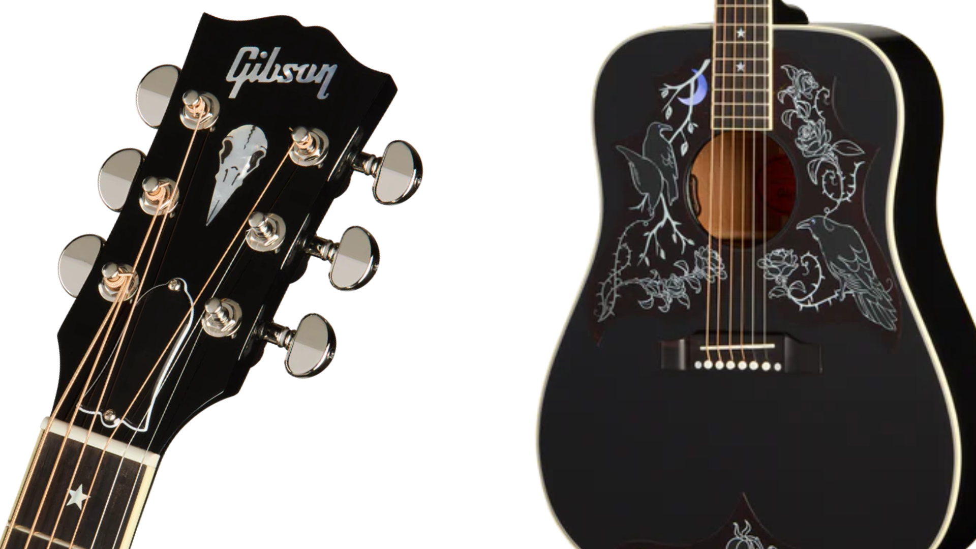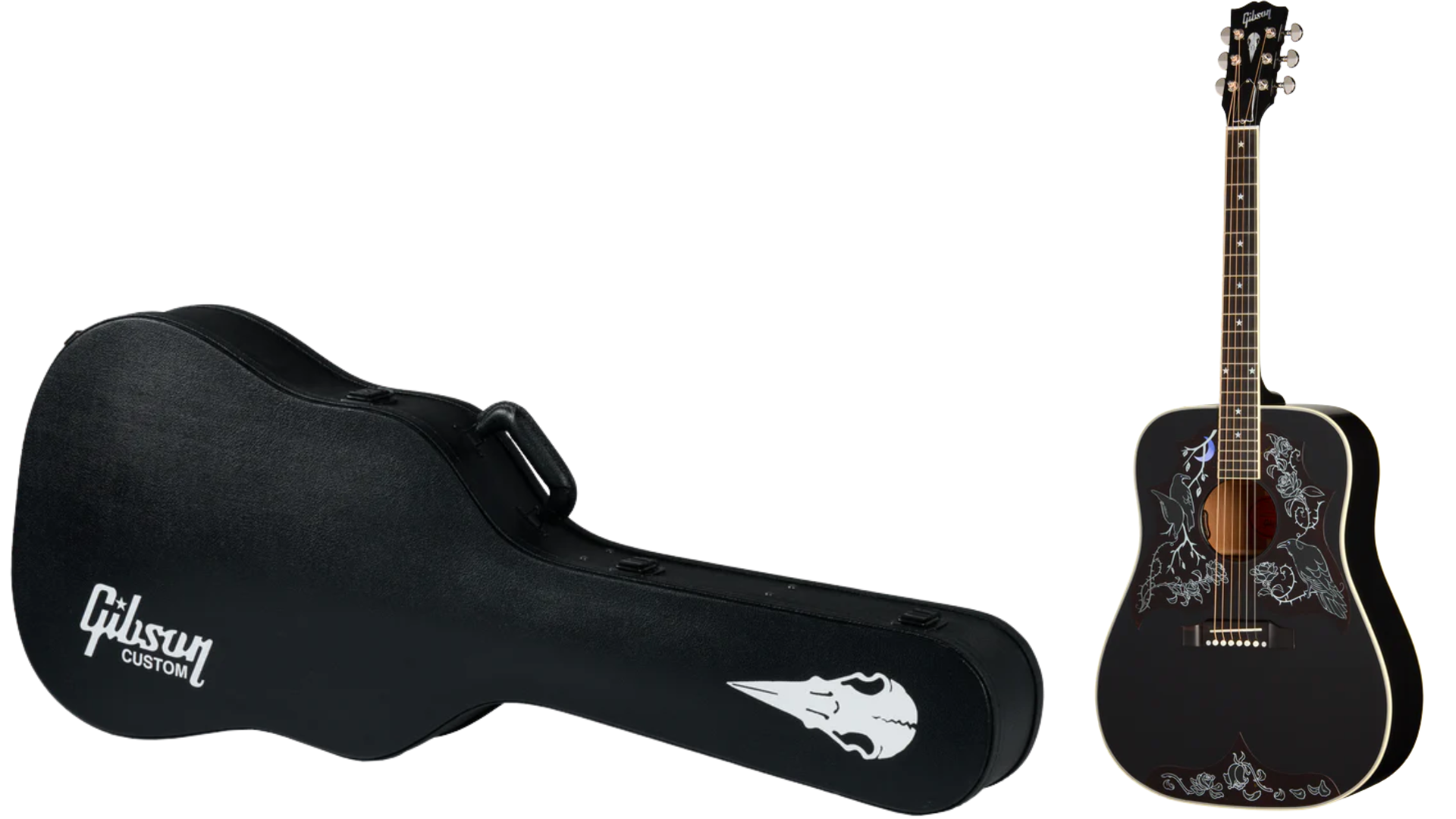 Gibson Custom Kirk Hammett Raven – limitierte Akustikgitarre mit Ebenholz-Finish und Rabenmotiven.