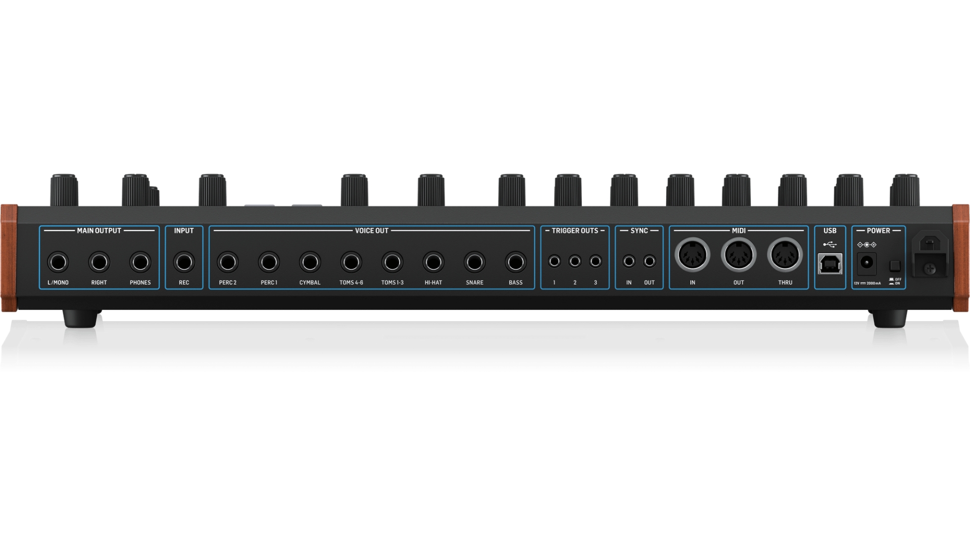Die Klangerzeugung der Drum Machine erfolgt vollständig analog. Kicks, Snares und Toms werden durch echte Schaltkreise generiert. Behringer verzichtet bewusst auf Sample-basierte oder modellierende Verfahren.