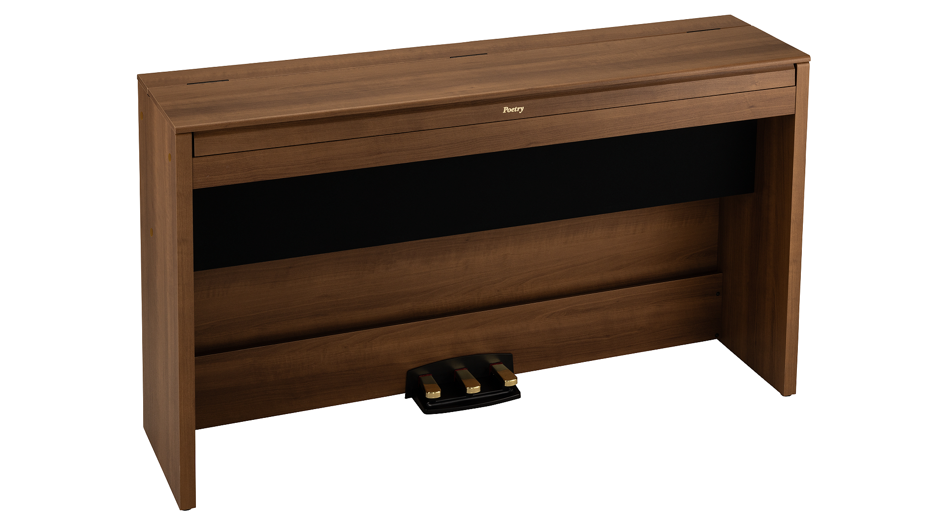 Das Instrument präsentiert sich in der Farbe „Poetic Brown“ mit klarer Linienführung. Die Tastaturabdeckung ist komplett eben gestaltet. Im geschlossenen Zustand misst das Piano 1.349 x 349 x 766 Millimeter.