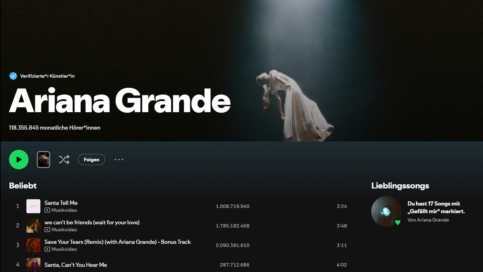 Meistgestreamte Künstler Spotify Ariana Grande