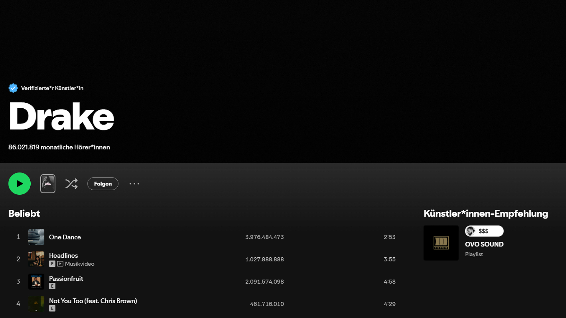 Meistgestreamte Künstler Spotify Drake