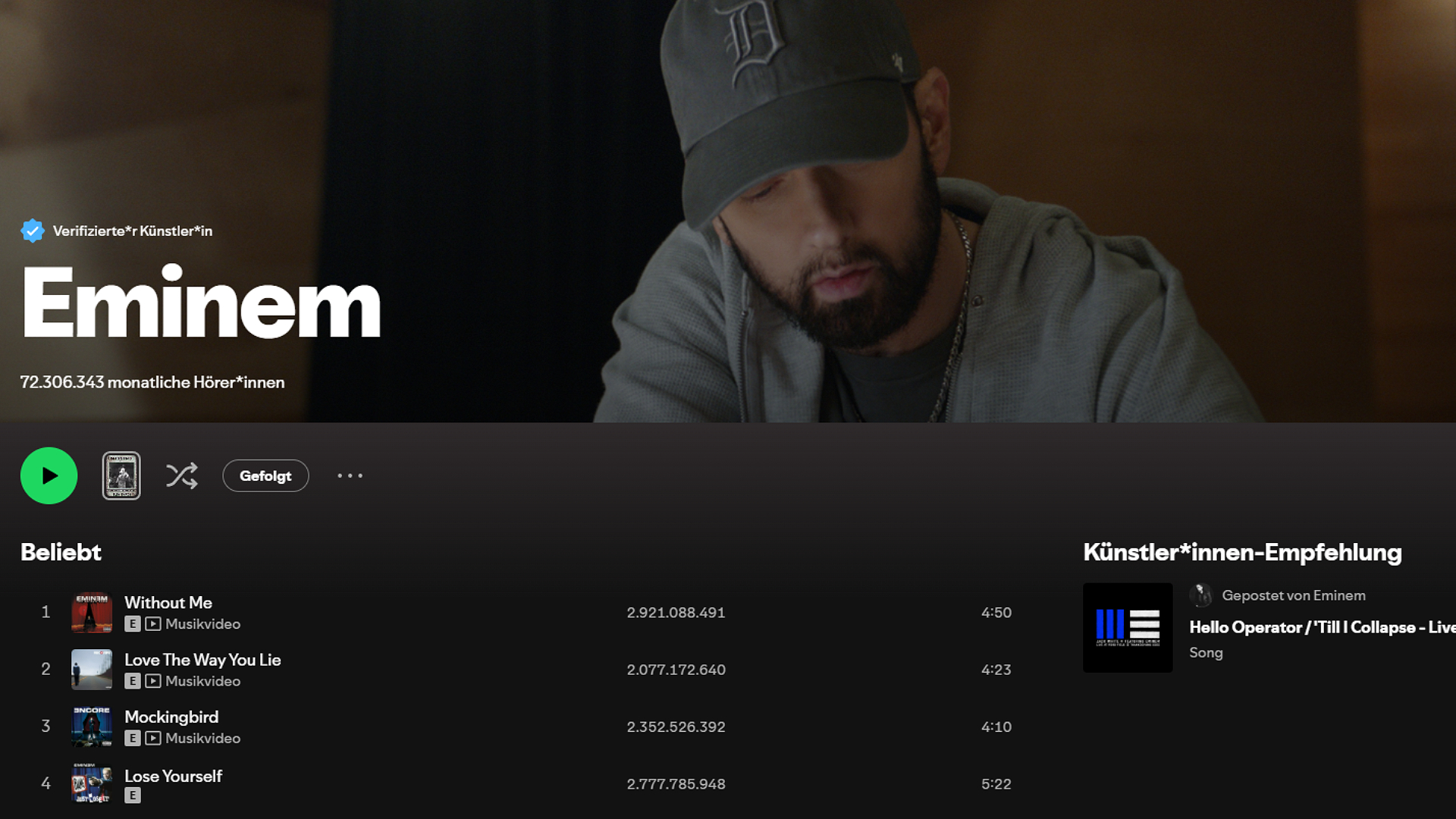 Meistgestreamte Künstler Spotify Eminem