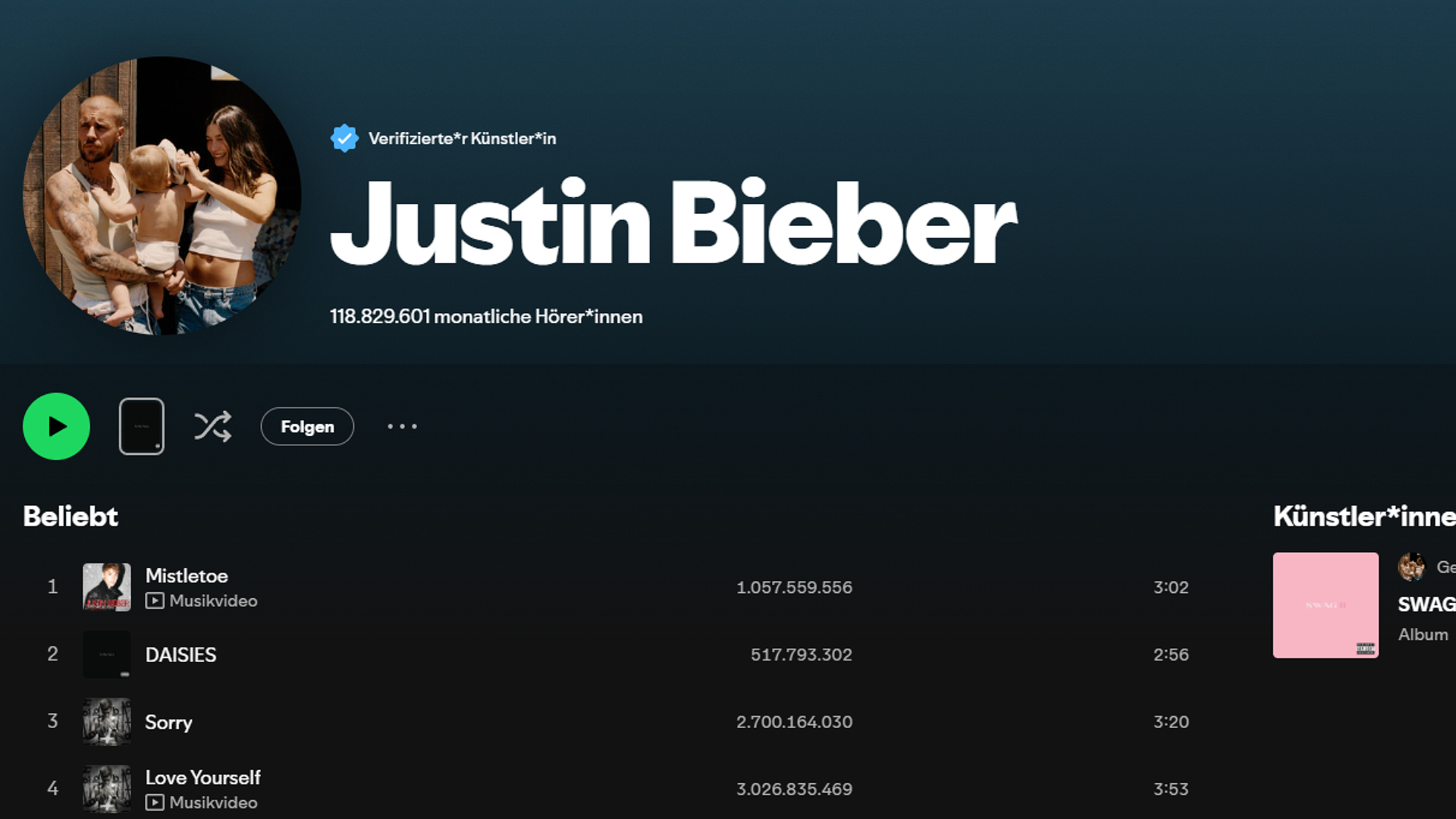 Was ist DEIN meistgestreamter Künstler?