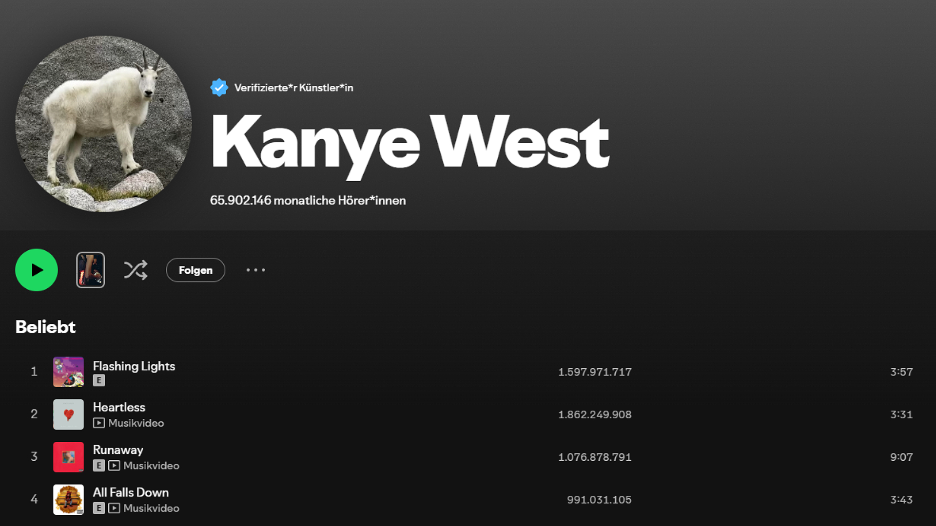 Meistgestreamte Künstler Spotify Kanye West