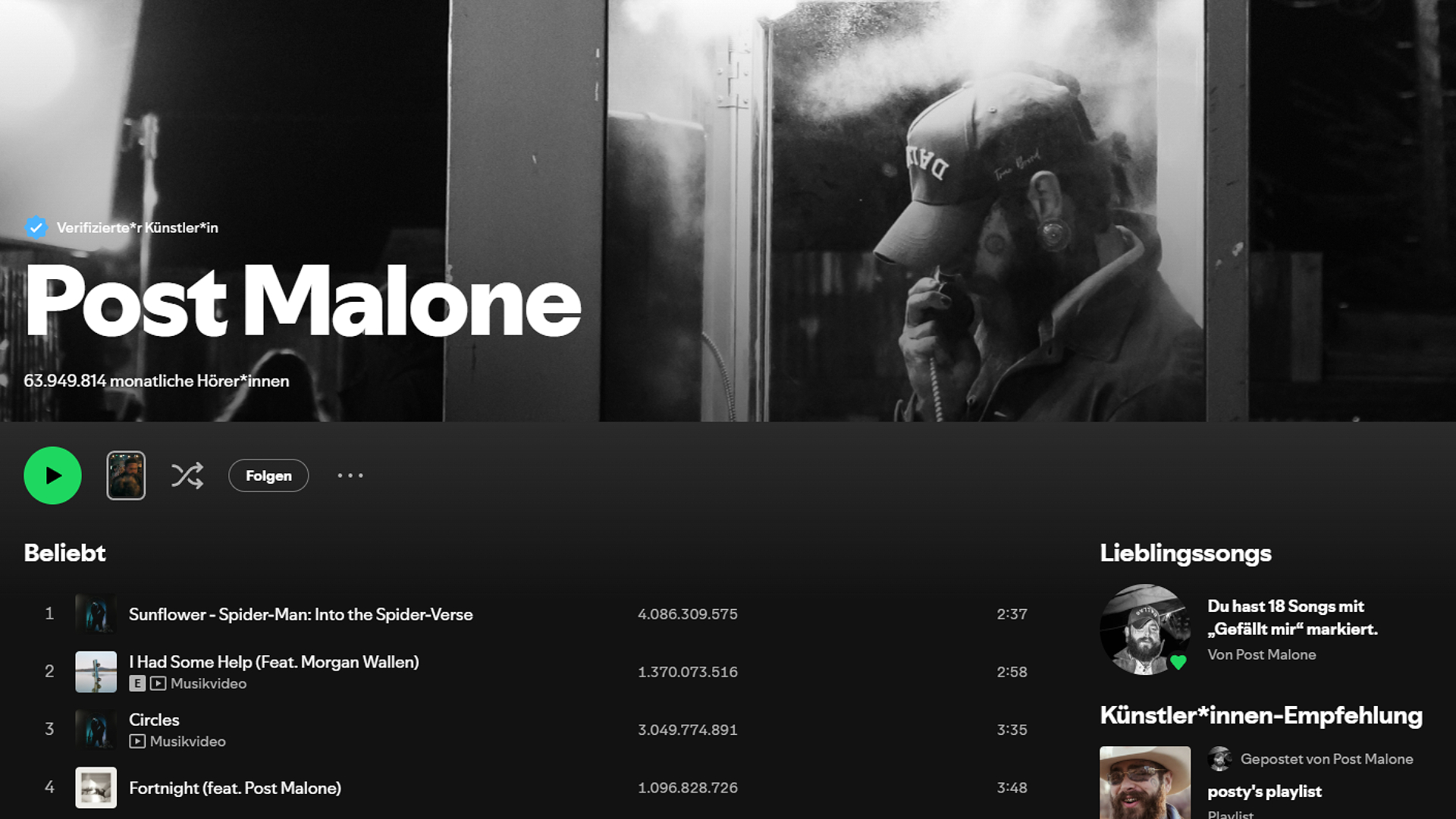 Meistgestreamte Künstler Spotify Post Malone