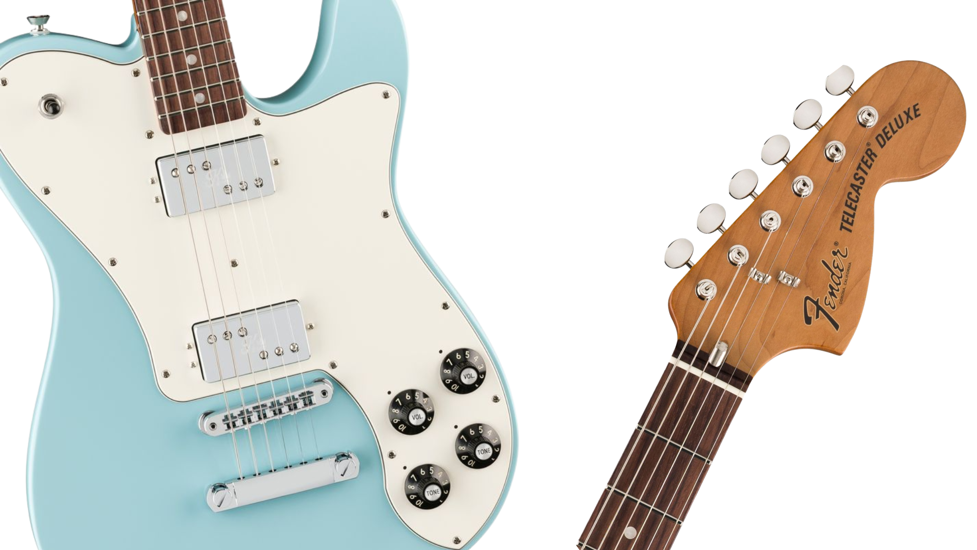 Das 12-Zoll-Griffbrett bietet angenehme Spielbarkeit für Bendings und Soli. Die Kopfplatte trägt den klassischen Fender Telecaster Deluxe-Schriftzug.