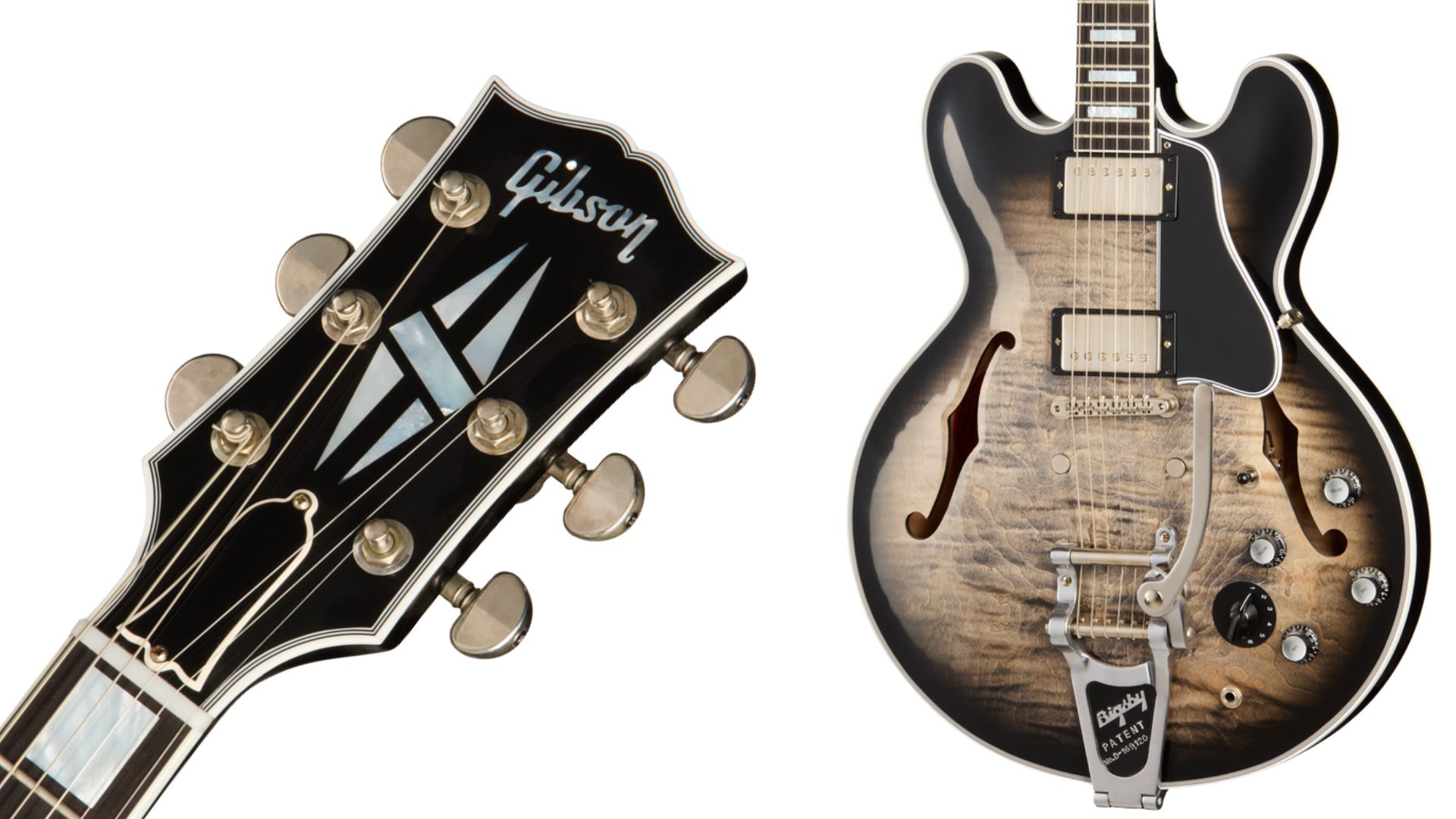 Die Gibson Custom Gary Clark Jr. ES-355 im VOS Cobra Burst Finish mit gemaserter Ahorndecke, Bigsby B7 Vibrato und Mono-Varitone-Schaltung