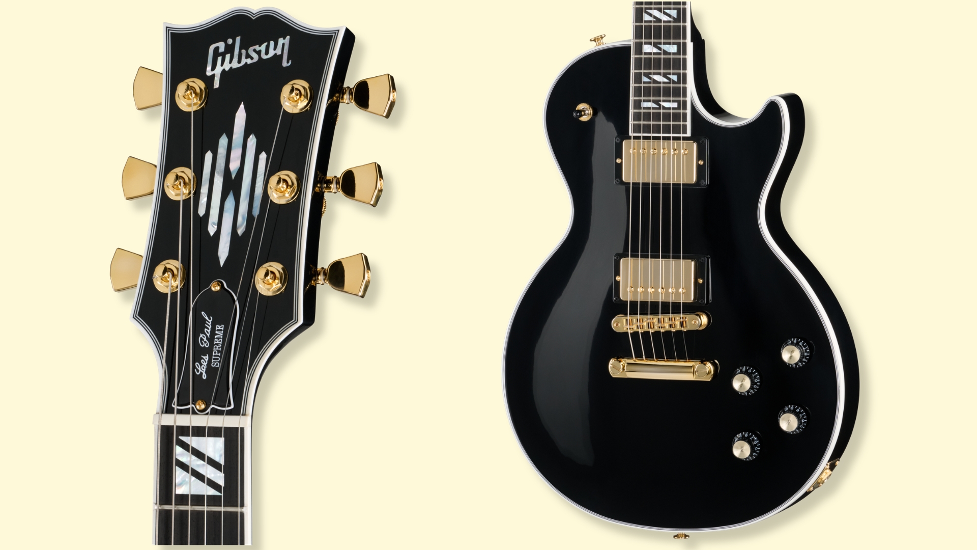 Die Gibson Les Paul Supreme Ebony erweitert die Supreme-Serie um eine zweitönige Variante mit umfangreichen Schaltoptionen und klassischer ebonyfarbener Lackierung.