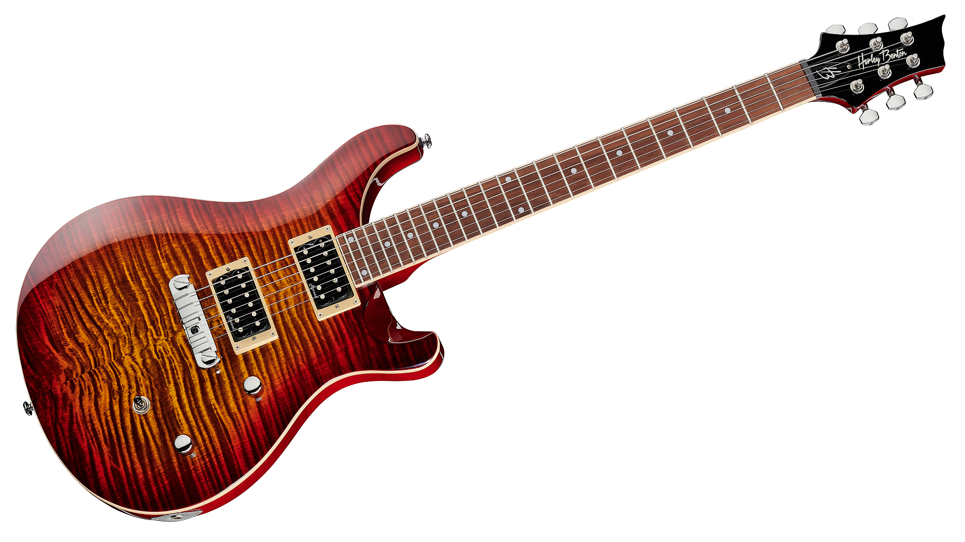 Auch die Harley Benton CST-24 Paradise Flame zeigt diese Ausrichtung. Sie orientiert sich optisch an einer PRS, bietet 24 Bünde und Humbucker und eignet sich damit für viele Stilrichtungen von Rock bis Fusion.
