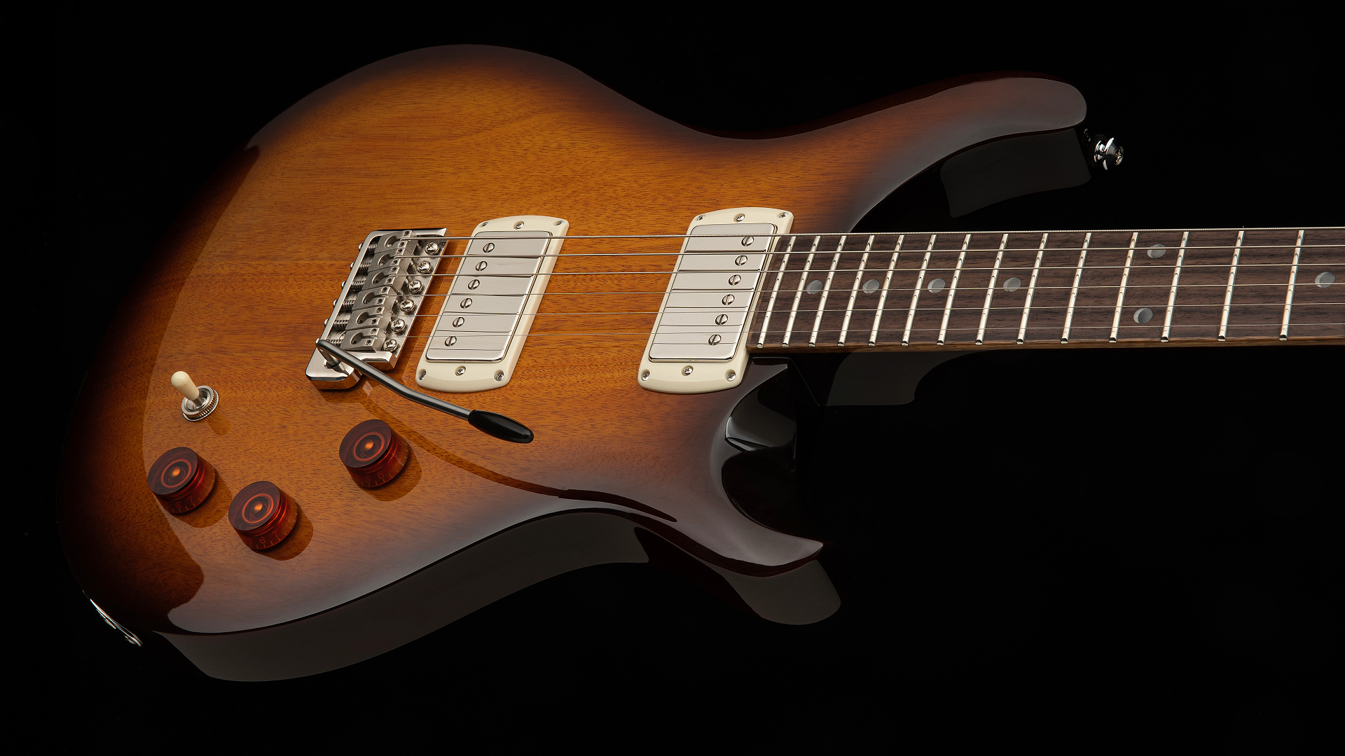 Das patentierte PRS Tremolo-System soll Klangqualität, Spielkomfort und Stimmstabilität vereinen. Die Hardware kommt in Nickel-Ausführung. PRS-spezifizierte Mechaniken sollen präzises Stimmen ermöglichen, ohne den Ton zu dämpfen.