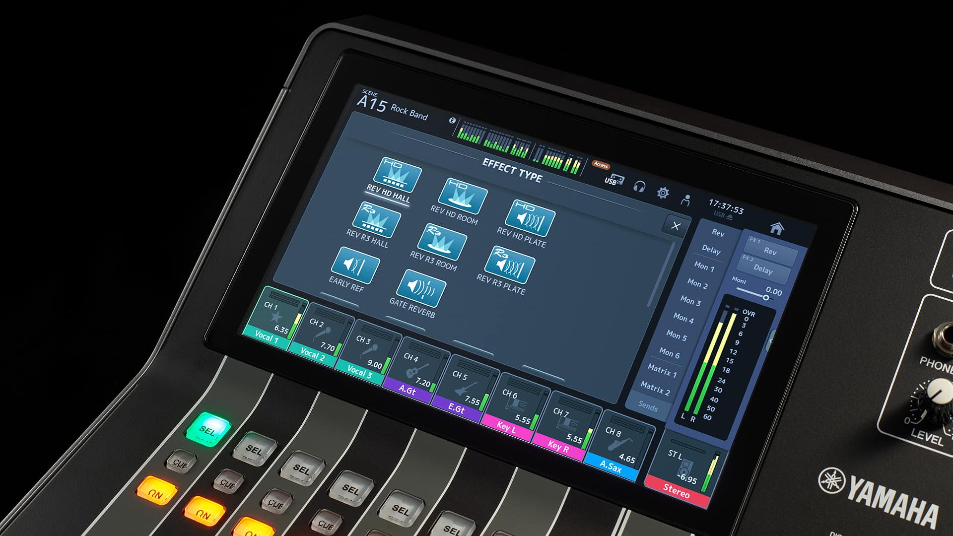 • 6 Mix-, 2 Matrix- und 2 Multieffektprozessoren mit 18 hochwertigen Effekten