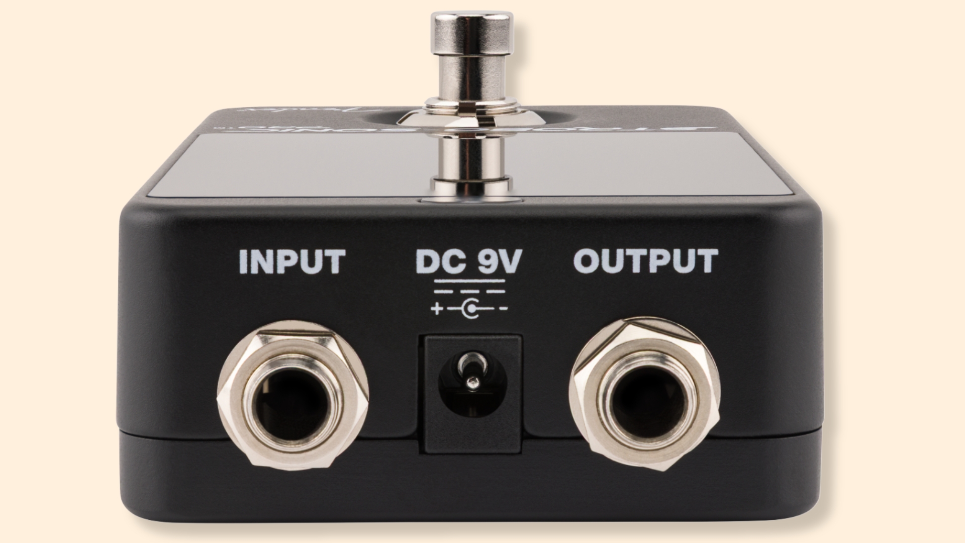 Die Buchsen für Eingang, Ausgang und Stromversorgung befinden sich an der Oberseite. Diese Anordnung spart Platz auf dem Pedalboard. Das Aluminium-Gehäuse misst 115 x 66 x 44 mm bei einem Gewicht von etwa 227 Gramm.