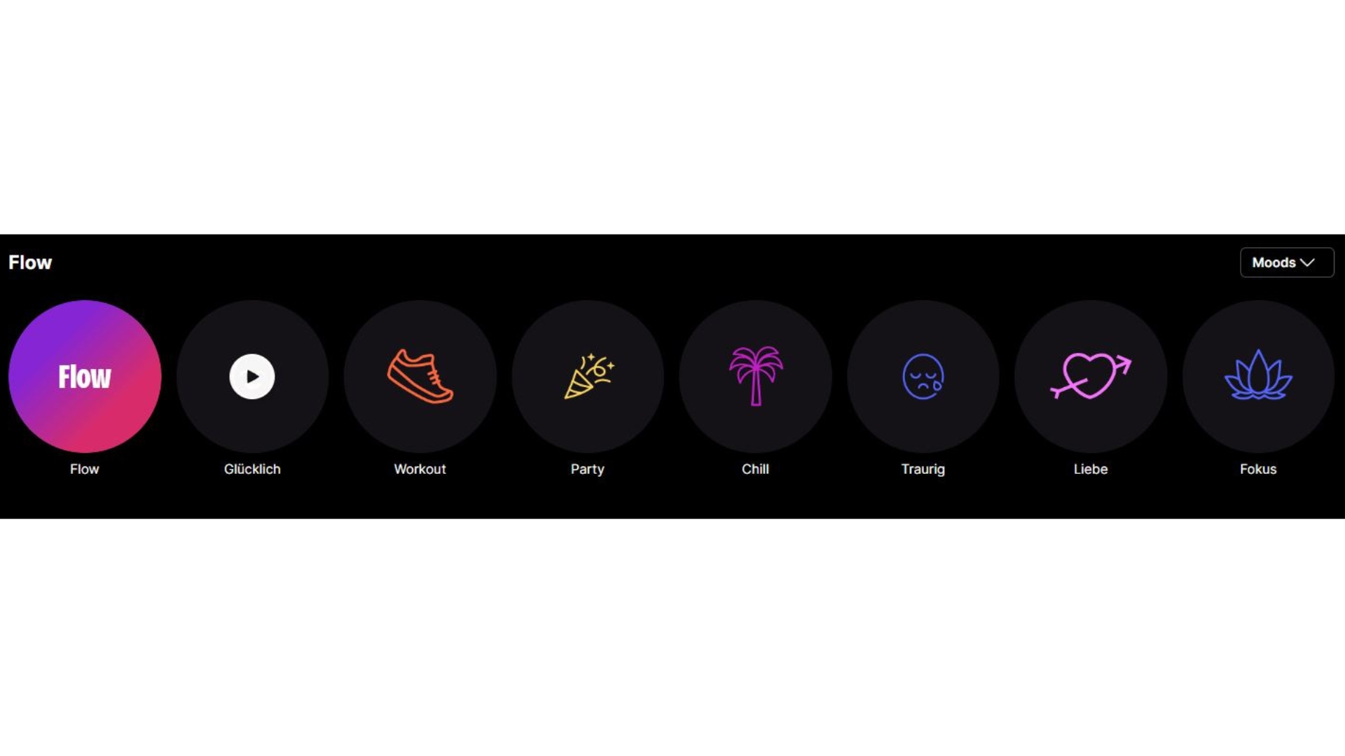 Flow ist ein KI-basierter endloser für dich personalisierter Mix, der auch an deine Stimmung angepasst werden kann.