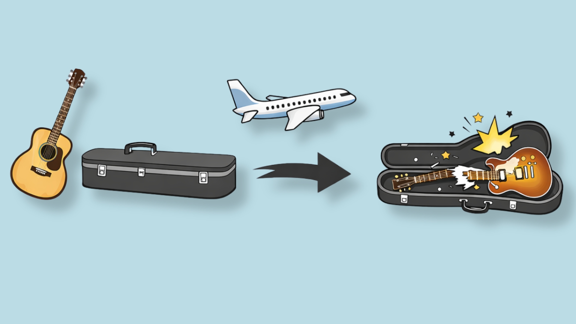 Wenn deine Gitarre nach einem Flug kaputt ist, ist guter Rat teuer.