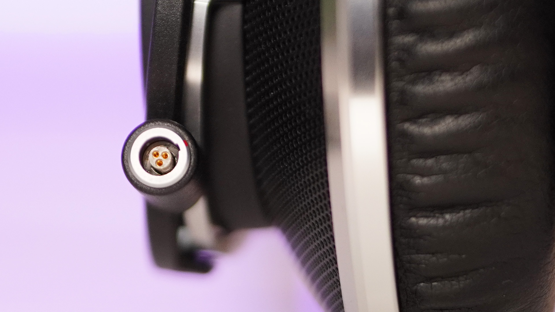 Auf der anderen Seite wartet eine Überraschung: Die Steckverbindung zum Anschluss an die linke Ohrmuschel liegt nicht in Form von Mini-XLR vor, stattdessen wurde hier eine dreipolige Push-Pull- Verbindung des Herstellers Lemo verbaut.