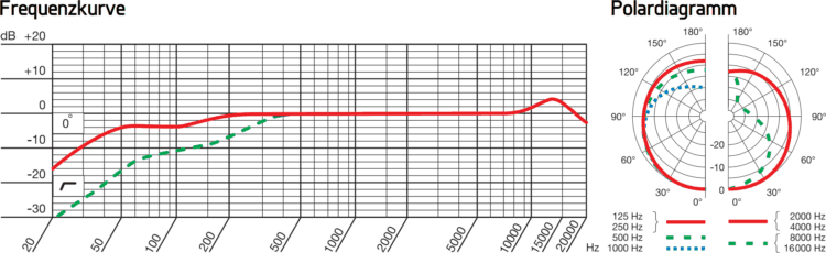 Außerordentlich stark zeigt sich der maximale Schalldruckpegel. Im Klartext: Du kannst Instrument mit extrem heftigen Pegelausschlägen aufnehmen, also zum Beispiel Blasinstrumente oder stark aufgerissene Gitarren-/Bassverstärker.