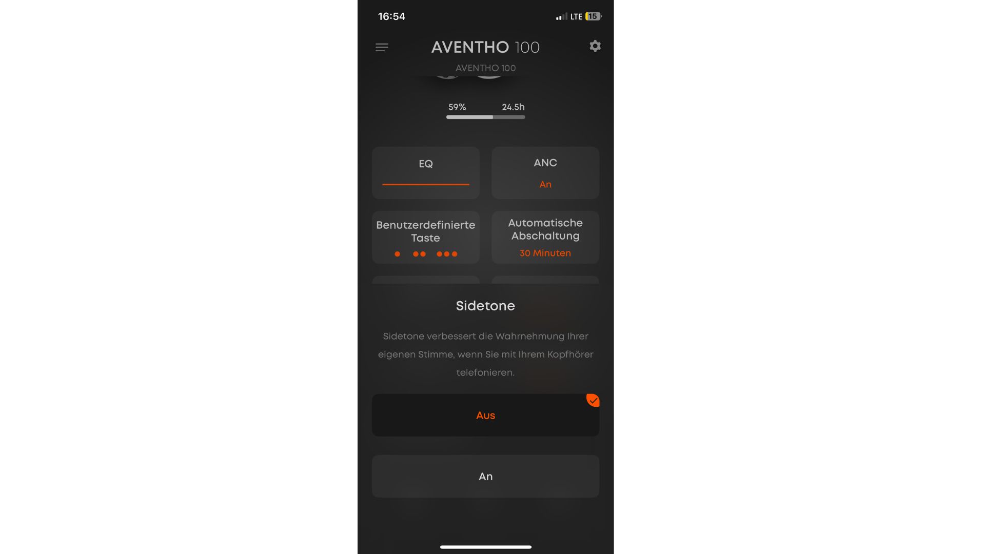 Die Sidetone-Funktion lässt sich in der App gezielt ein- oder ausschalten und verbessert bei Telefonaten die Wahrnehmung der eigenen Stimme.