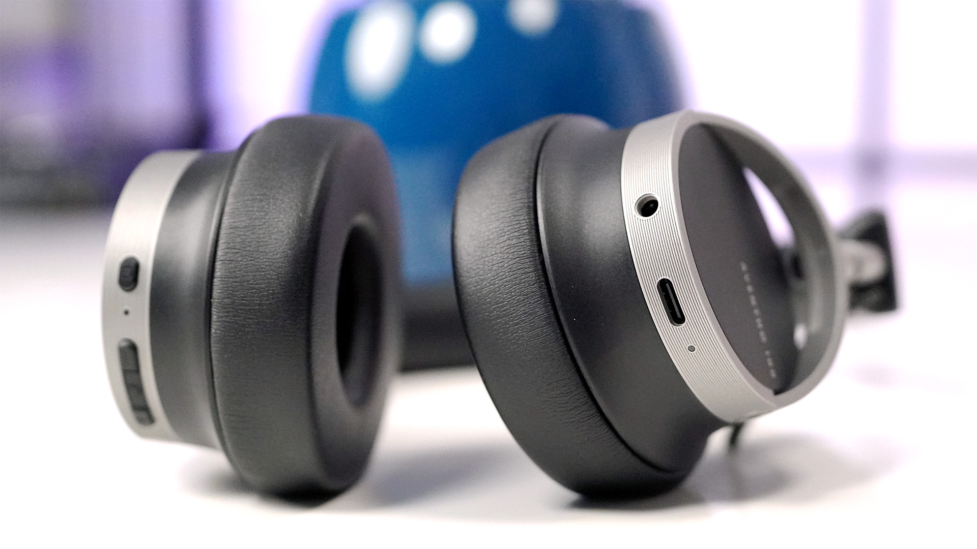 Die Unterseite der Ohrmuschel zeigt die Bedientasten sowie die Anschlüsse, die dezent in das Gehäuse eingelassen sind.