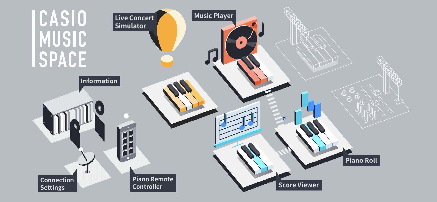 Passend zum Start der neuen Casio Digitalpianos gibt es eine neue App: Casio Music Space. Wie vorher bei Chordana Play vereint Casio Music Space verschiedene Funktionen in einer App: