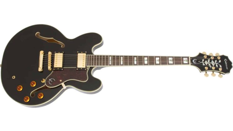 Wie bei Jazzmodellen üblich – und für den typischen Sound nicht ganz unerheblich – zieren zwei F-Löcher die Decke neben einem roten Tortoise-Schlagbrett, welches das „E“ des Herstellers Epiphone trägt. Das Innere der Schalllöcher wurde ebenfalls mit derselben cremefarbenen Schicht überzogen wie die Bindings, wodurch sich ein optisch reizvolles Gesamtbild enthüllt. Ferner kann auch je nach Geschmack ein Natur- oder Sunburst-Finish gewählt werden.