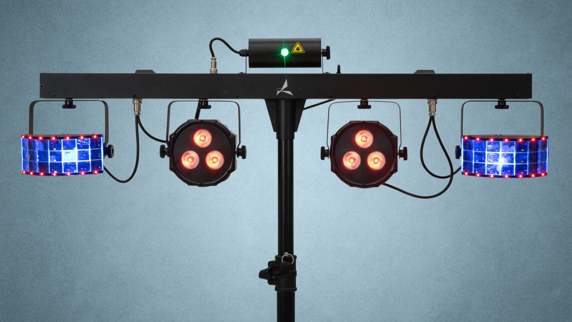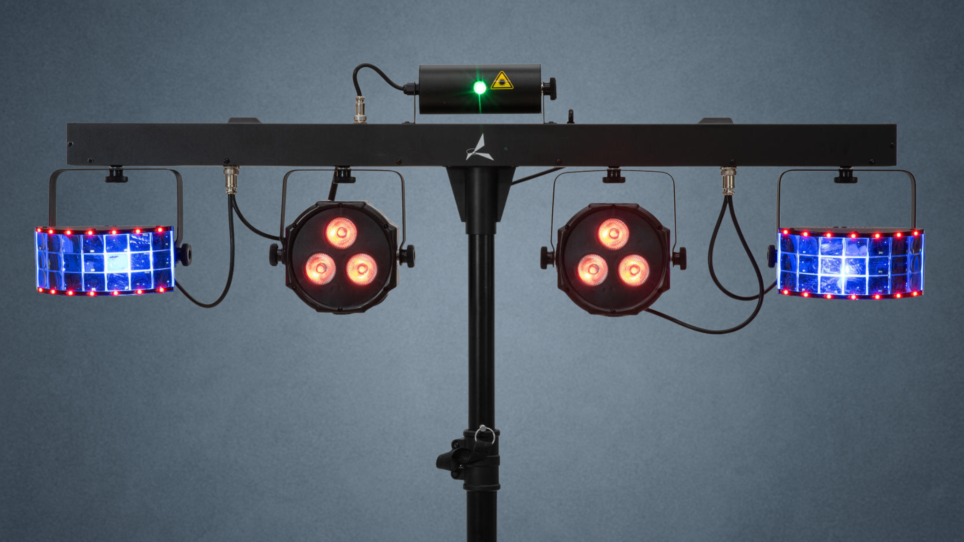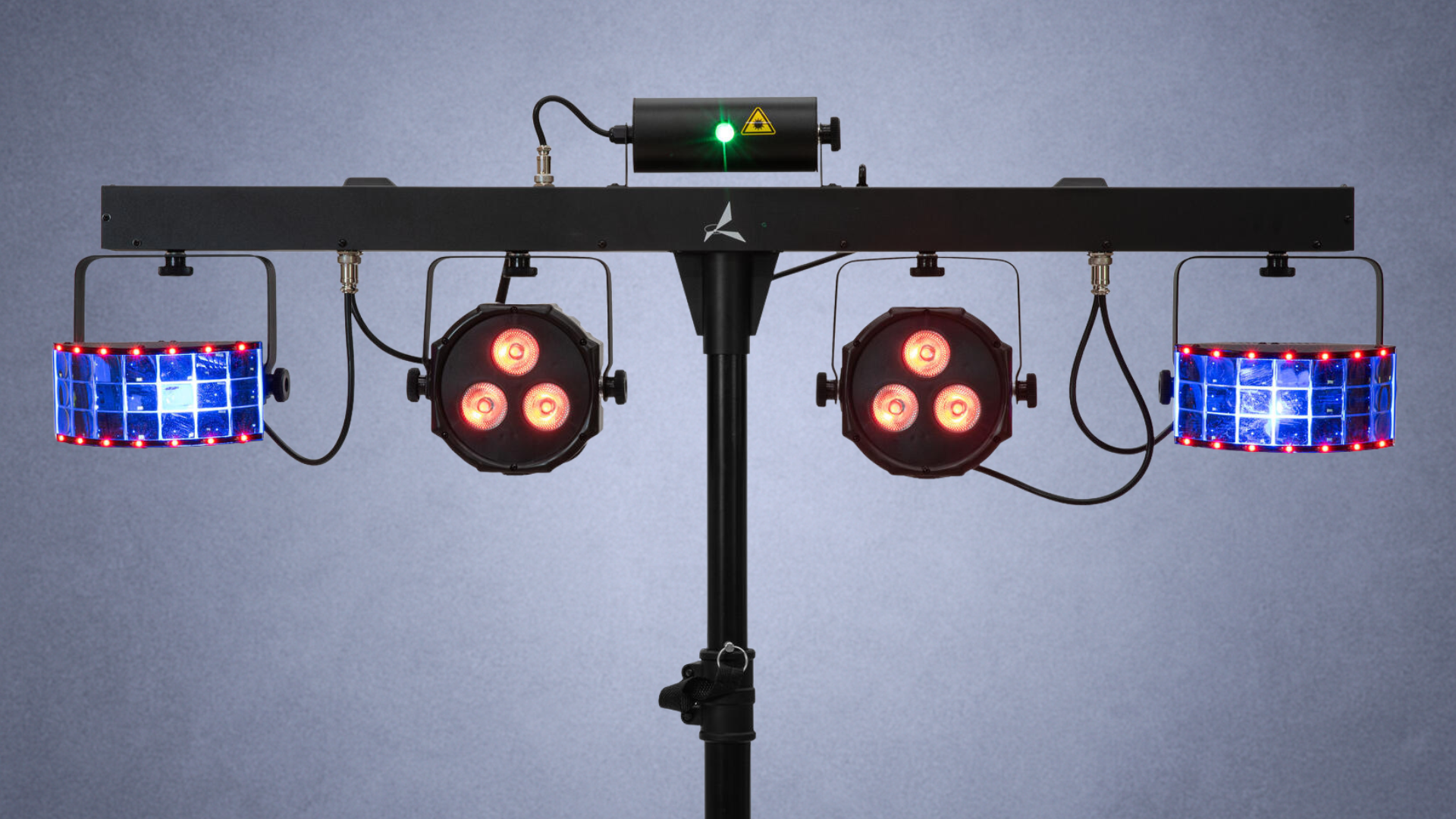 Der Eurolite LED KLS Laser Bar FX AIR ist ein kompaktes Lichtsystem mit zwei Spots, zwei Derbys, Show-Laser und Twinkle-Effekt.