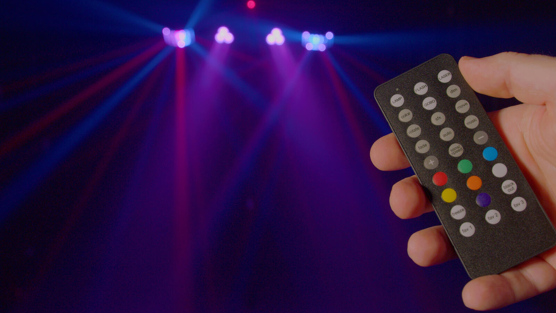 Praktisch: Sie funktioniert auch mit anderen Geräten des Herstellers – sinnvoll für mobile DJs oder kleine Gigs. Damit kannst Du bequem aus der Ferne Farben wählen, den Musikmodus aktivieren oder die Ablaufprogramme anpassen.