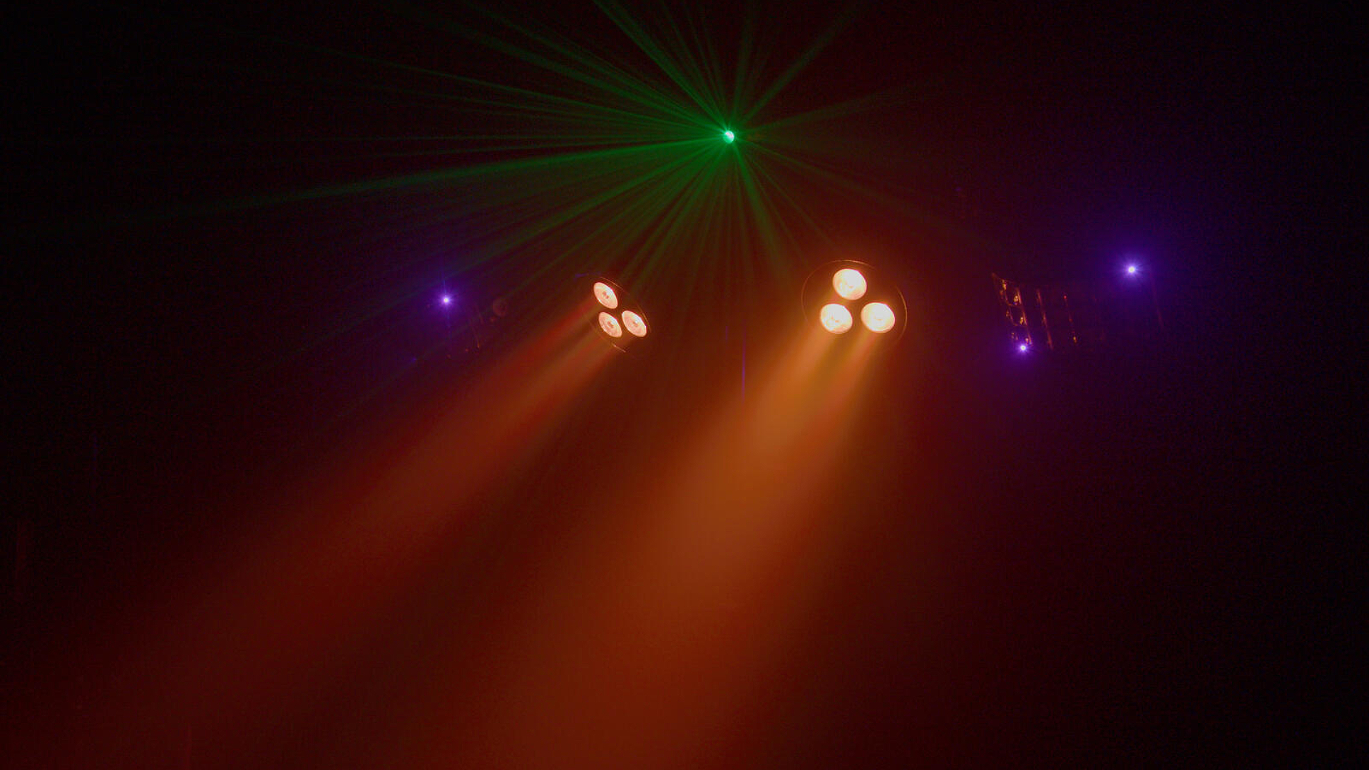 Die erzeugten Effekte machen im Zusammenspiel richtig Spaß: Die Kombination aus PARs, Derbys und Laser sorgt für ein dynamisches, farbenfrohes Lichtbild mit viel Bewegung. Besonders mit Nebel entfalten die Strahlen des Lasers und der Derbys eine beeindruckende Tiefe im Raum.