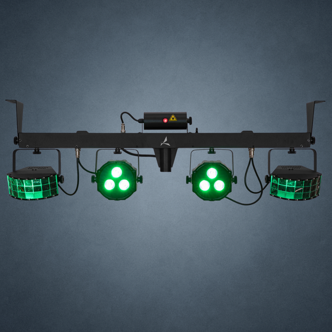 - Lichteffekt-Bar mit Spots, Derbys, Laser und Twinkle-Effekt