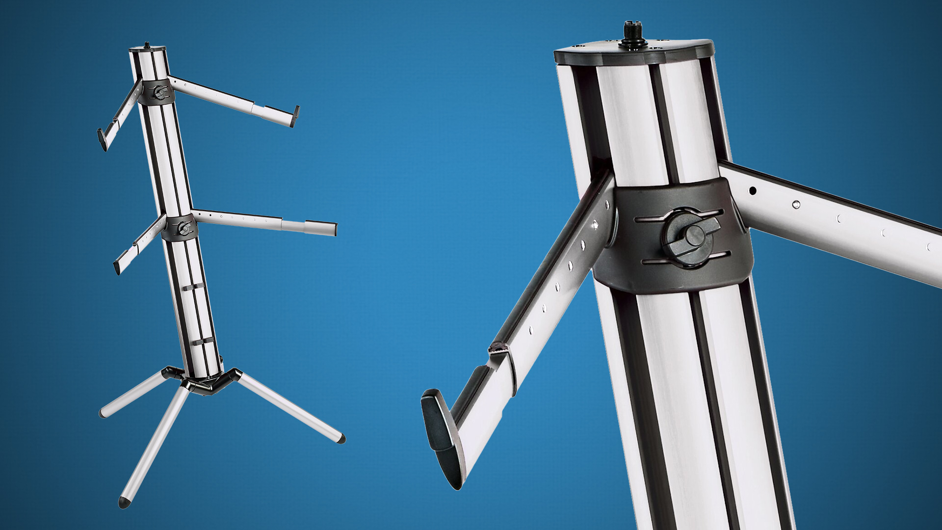 Keyboard-Säulenständer mit umfangreichen Erweiterungsmöglichkeiten.