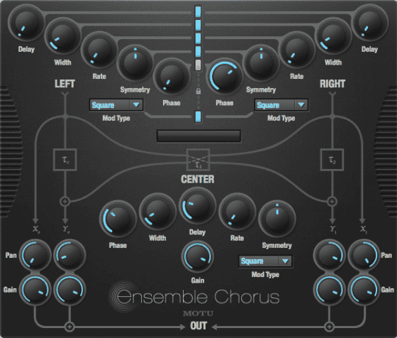 Der Ensemble Chorus scheint mir hier ein besonderes Highlight zu sein. Obwohl der Anblick dieses Plugins etwas befremdlich anmutet, fand ich mich doch beim Verfolgen der eingezeichneten Signalpfade erstaunlich schnell zurecht.