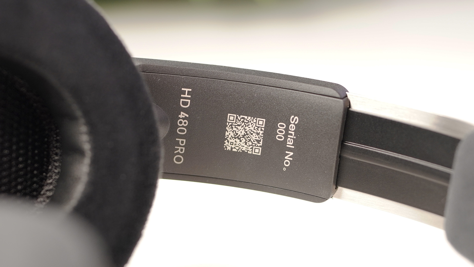 Auf der Innenseite des Bügels befindet sich ein QR-Code zum Sennheiser Kundenportal.