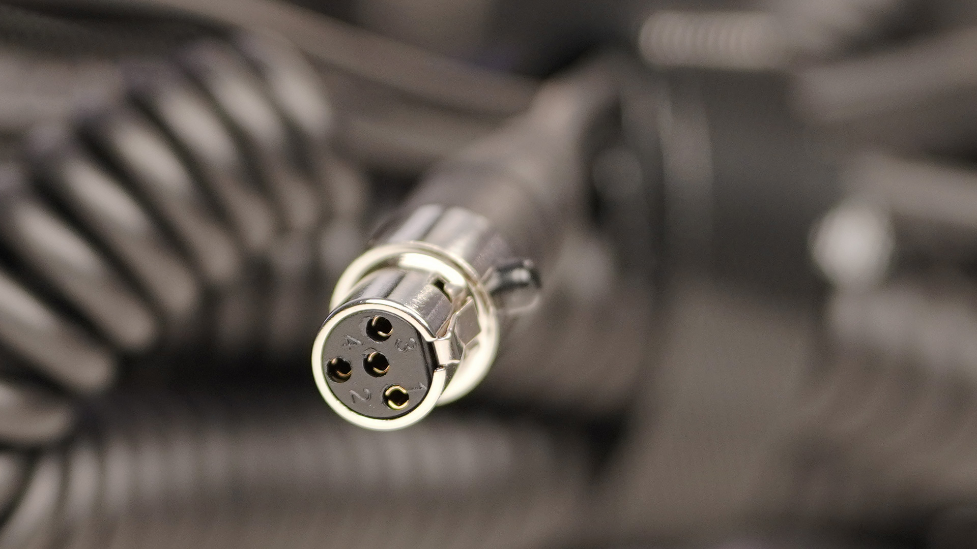 Die Verbindung am Kopfhörer läuft über einen 4-poligen XLR-Anschluss.