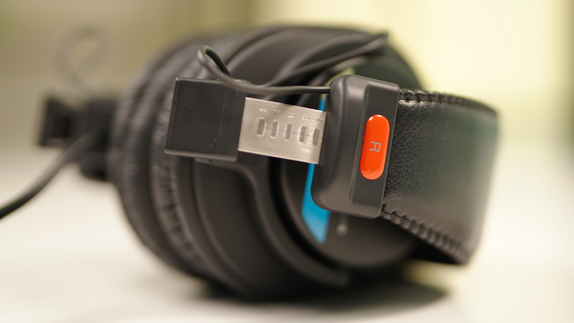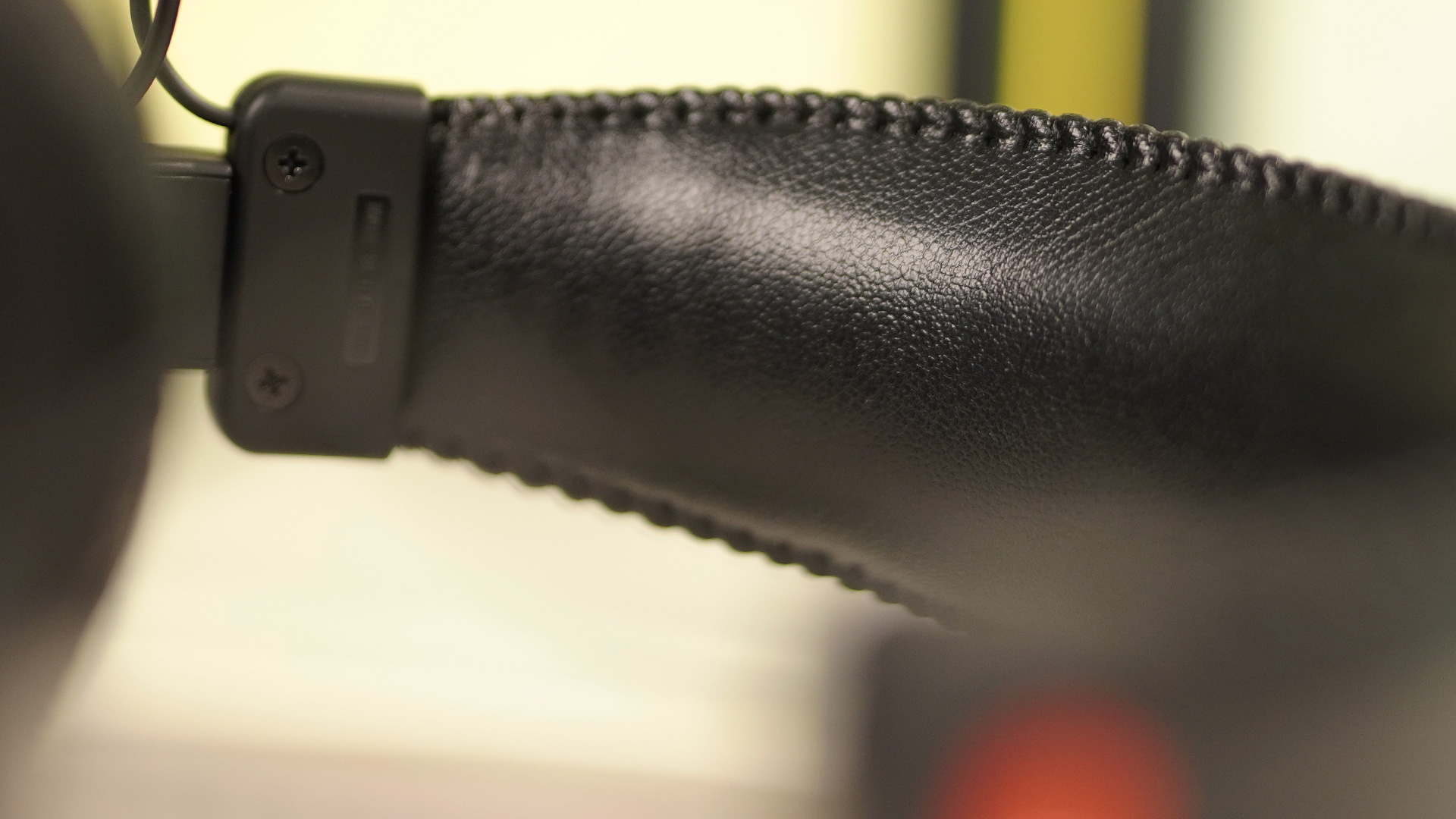 Der mit weichem Leder verkleidete Bügel sitzt bequem auf dem Kopf auf. Die Ohrmuscheln tragen sich dank des geknitterten Lederüberzugs ebenfalls sehr angenehm, und man schwitzt kaum.