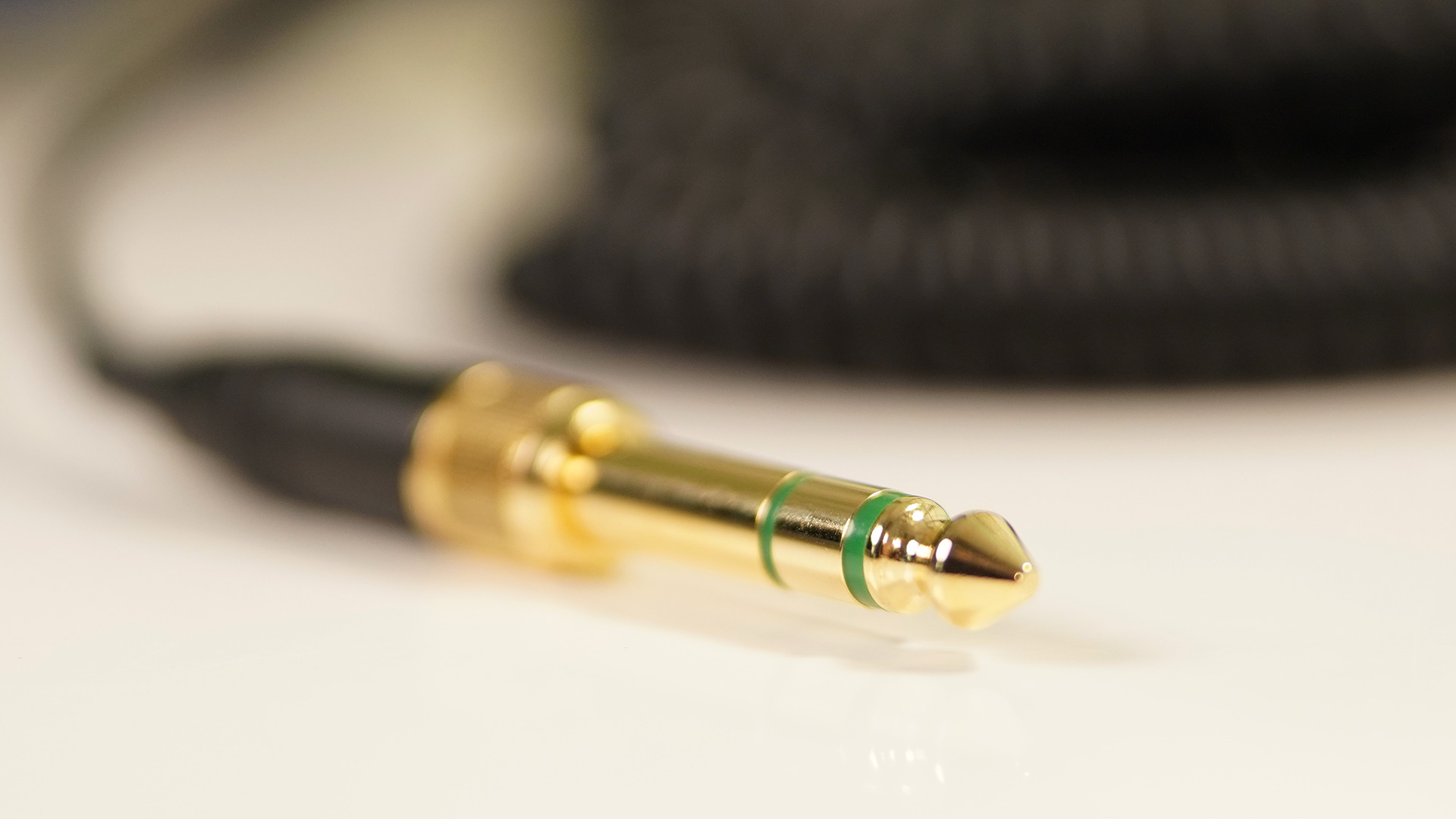 Leider lässt sich das Kabel nicht abnehmen, wie es bei anderen Modellen wie beispielsweise dem AKG K271S ist. Den kleinen, vergoldeten Klinkenstecker kannst Du mit dem mitgelieferten, natürlich ebenfalls vergoldeten Schraubadapter auf 6,3 mm vergrößern.