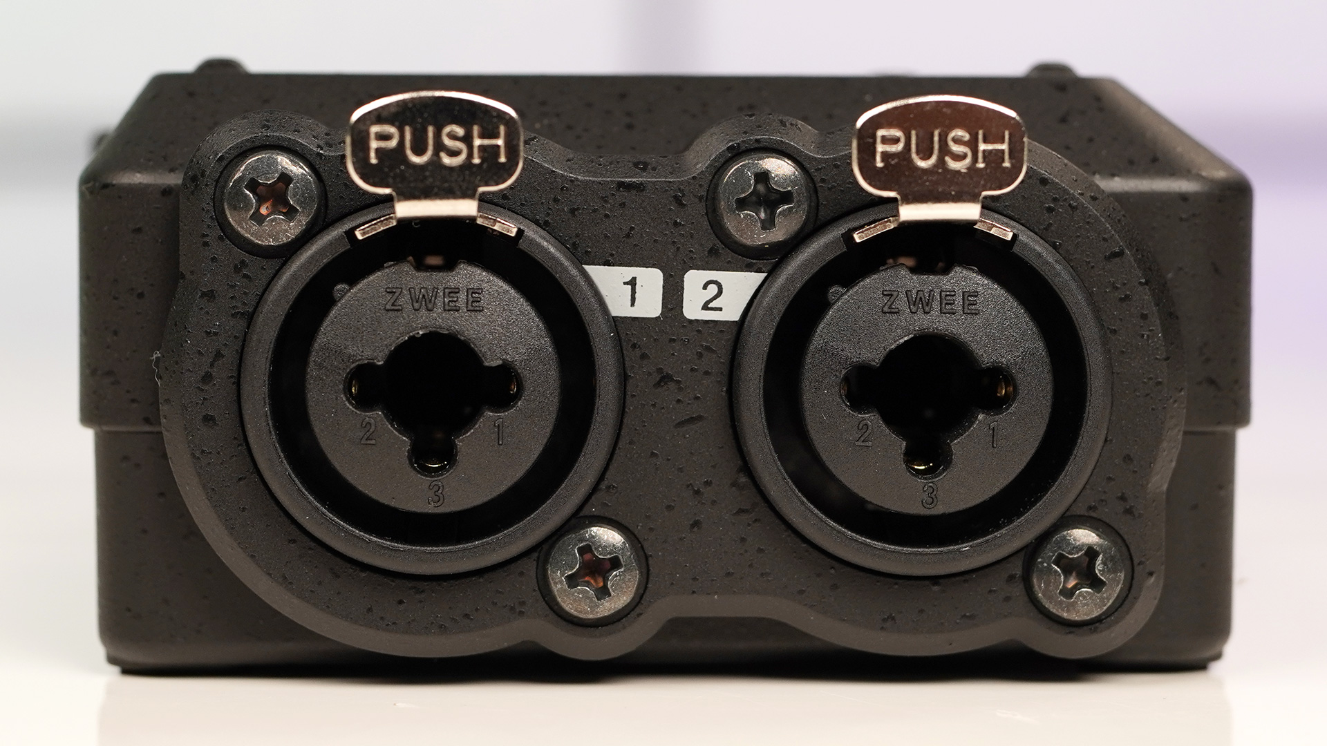 Auf der linken Seite finden sich die beiden XLR/TRS Kombi-Eingänge. Für den Anschluss von XLR-Mikrofonkabeln ist an jedem Anschluss eine Verriegelung vorhanden. So kann sich das Kabel nicht aus Versehen lösen.