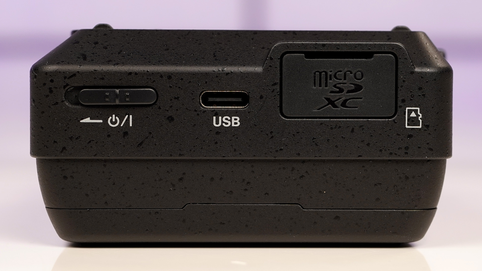 Auf der rechten Seite sind der Slot für die microSD-Karte und ein USB-C Anschluss angebracht. Über letzteren kannst Du den Recorder mit Strom versorgen und mit deinem Laptop oder PC verbinden.