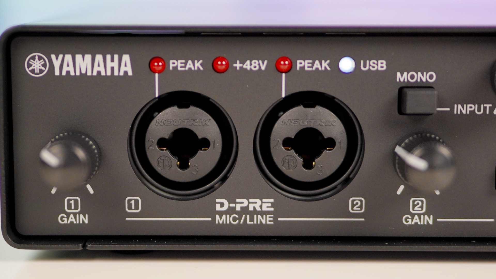 Die wichtigsten Dinge werden über Regler und Tasten am Audio Interface gelöst. Die eingebauten Yamaha D-PRE-Preamps verstärken Mikrofonsignale sauber und klar. Ein eigener DSP-Chip kann Effekte in Echtzeit berechnen, ohne dass dein Computer dadurch langsamer wird.